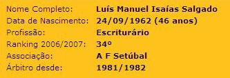 Mais um amante da arbitragem vai terminar a sua carreira esta época. Vai ser no Estádio Nacional, numa final da Taça de Portugal, que Luís Salgado vai chegar ao final da sua carreira como árbitro assistente.